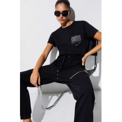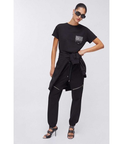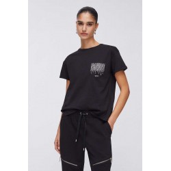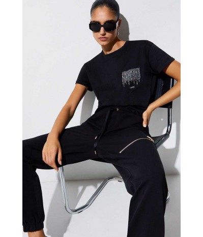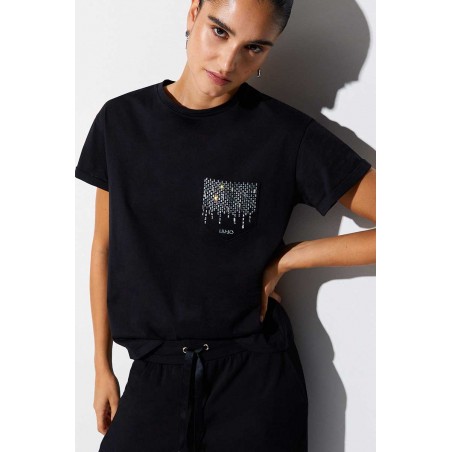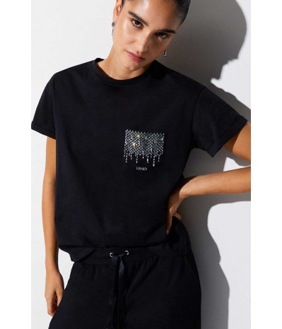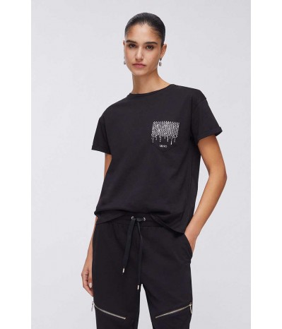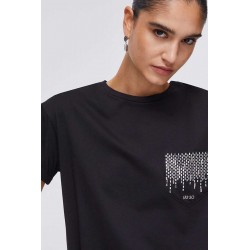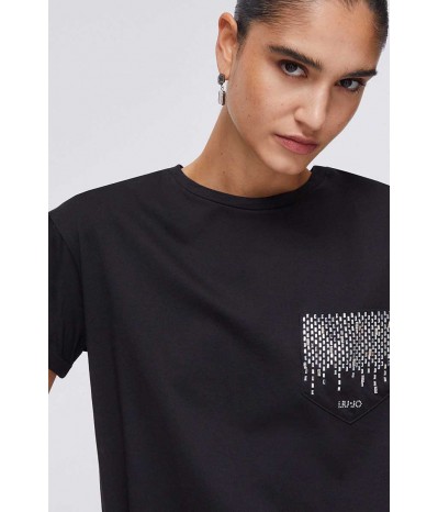 T-shirt Liu Jo a manica corta in cotone, con linea semplice e confortevole. Il taschino laterale con strass e logo dona personalità e luce al capo.