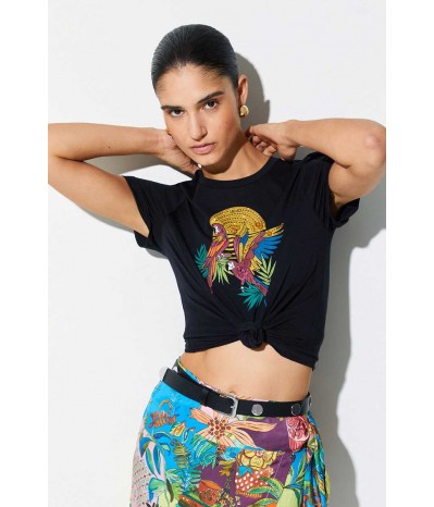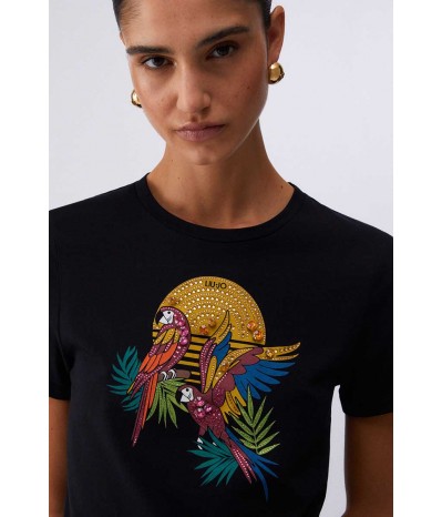 T-shirt Liu Jo girocollo a manica corta in jersey di cotone, dalla vestibilità regular. La stampa decorativa con applicazioni dona un tocco distintivo al look.