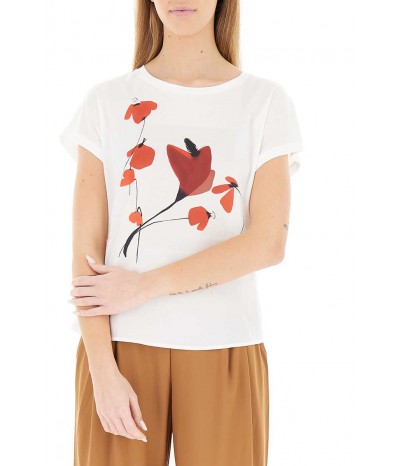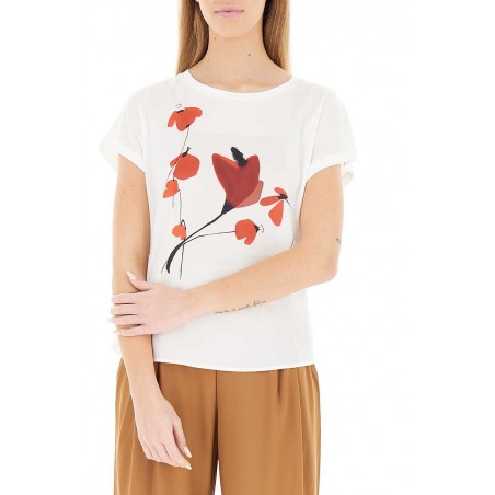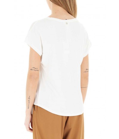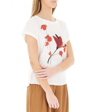 T-shirt Diana Gallesi in viscosa morbida con pannello stampato frontale. Modello girocollo a manica corta, perfetto per un look quotidiano leggero e femminile.
