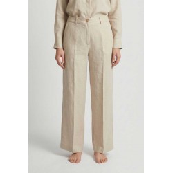 Pantalone Pennyblack in 100% lino con elastico in vita, chiusura con bottone e zip e tasche funzionali. Il modello a palazzo garantisce una vestibilità fluida e fresca.