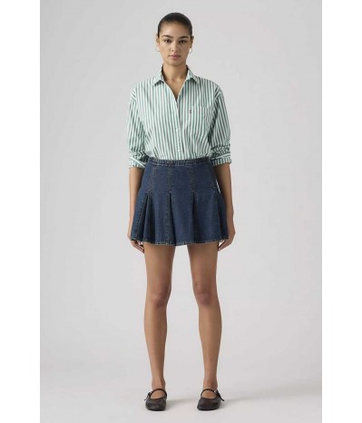 Gonna corta Levi’s realizzata in denim, caratterizzata da pieghe che donano movimento al capo. La zip laterale completa il design con un dettaglio funzionale e discreto.