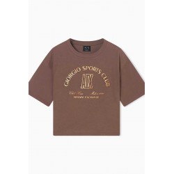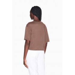 T-shirt cropped Armani Exchange in cotone, con scollo rotondo e maniche corte. Un capo leggero e confortevole, ideale per outfit casual dal mood contemporaneo.