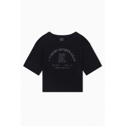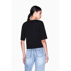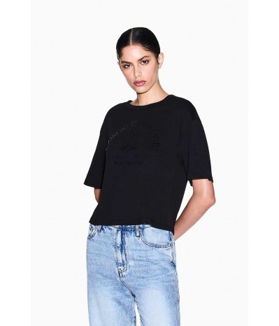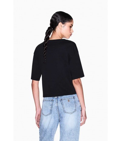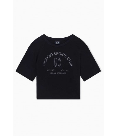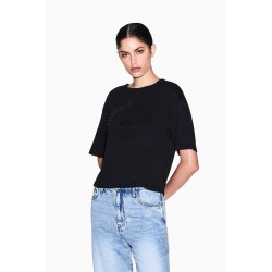 T-shirt cropped Armani Exchange in cotone, con scollo rotondo e maniche corte. Un capo leggero e confortevole, ideale per outfit casual dal mood contemporaneo.