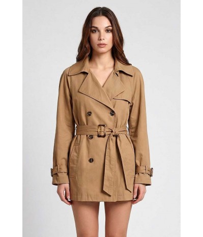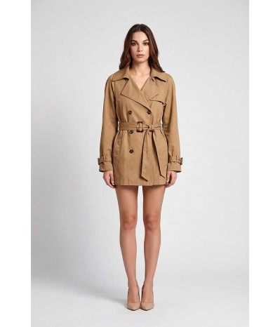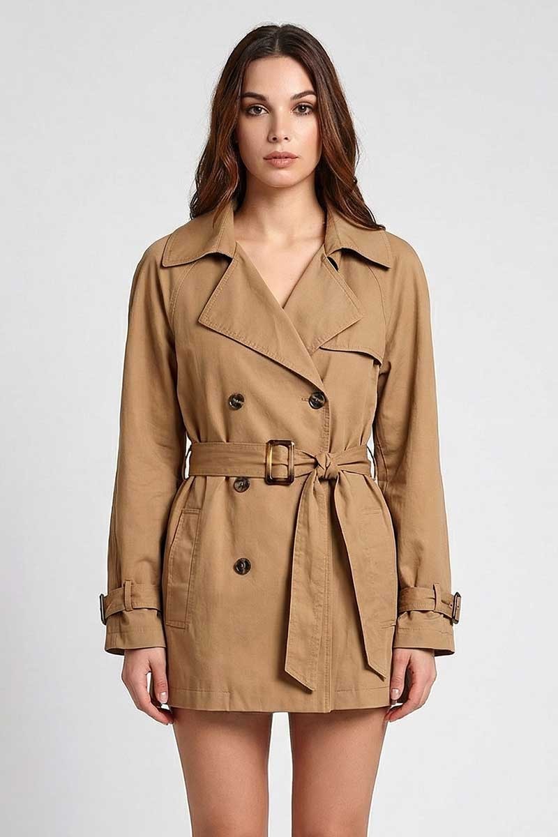 Trench Diana Gallesi doppiopetto con cintura e maniche raglan, perfetto per un look elegante e senza tempo.