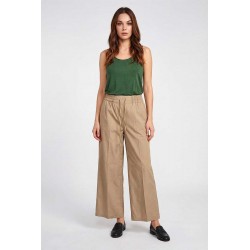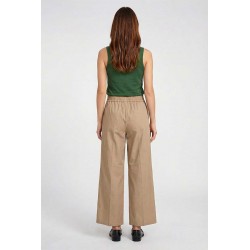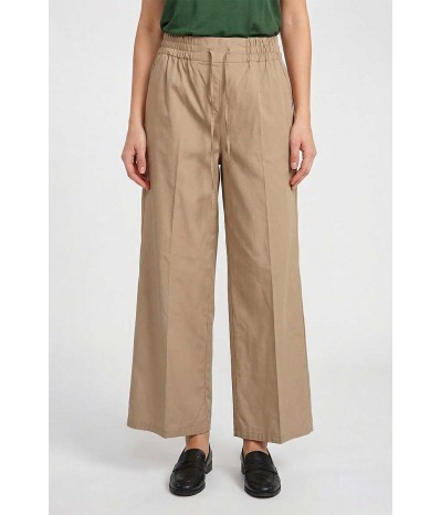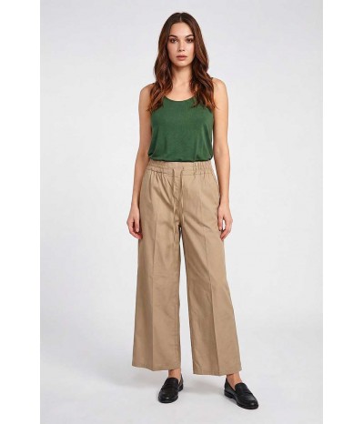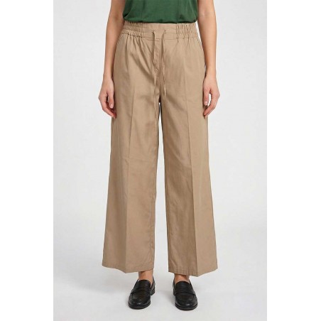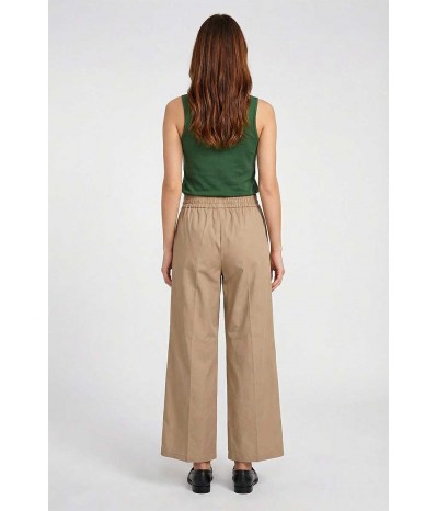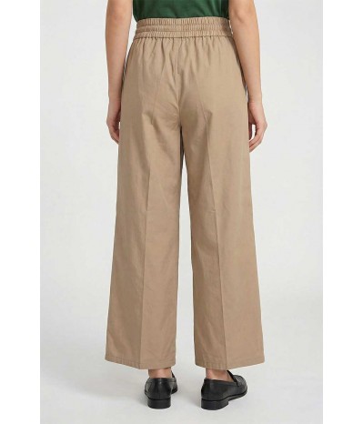 Pantalone Emme Marella in cotone con elastico e coulisse in vita. Modello palazzo cropped con tasche oblique, ideale per un look comodo e attuale.