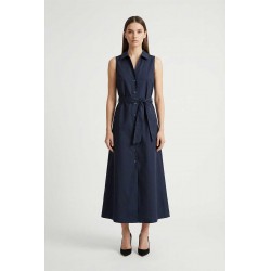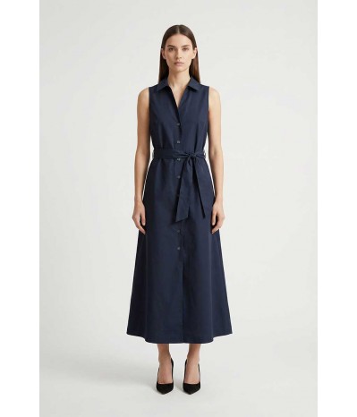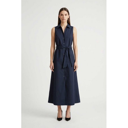 Abito lungo Woolrich modello chemisier con cintura coordinata e tasche laterali. La linea fluida valorizza la silhouette con uno stile elegante e pratico
