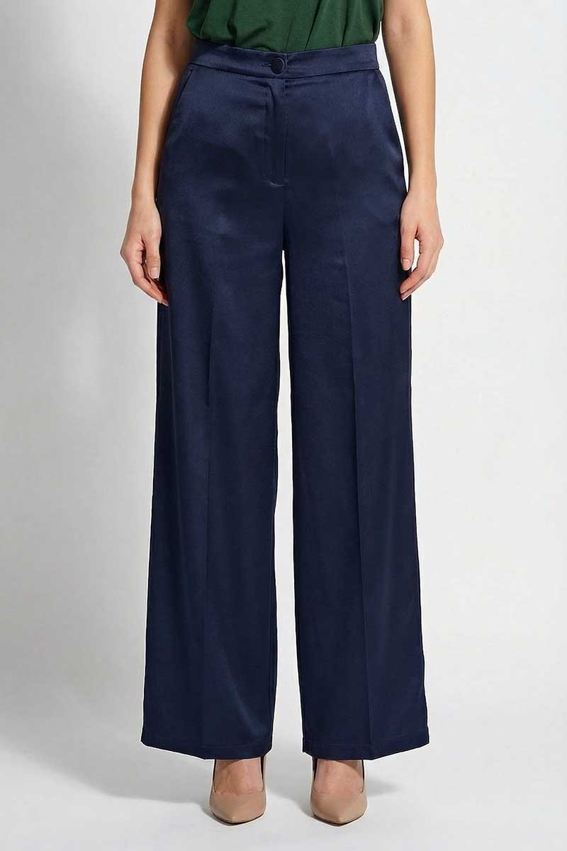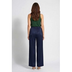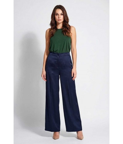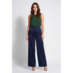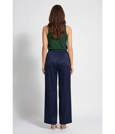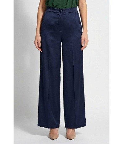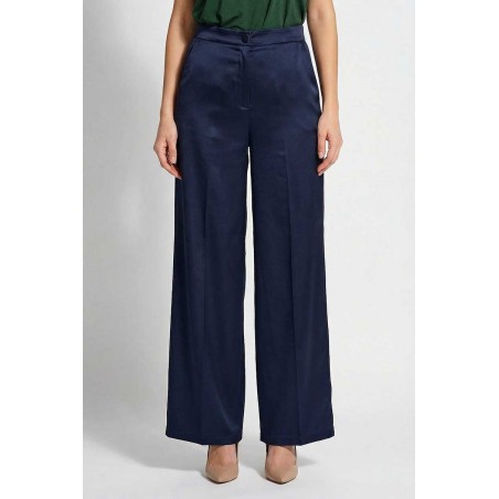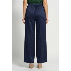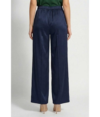 Pantalone Emme Marella modello palazzo in tessuto effetto seta, con tasche oblique ed elastico in vita.