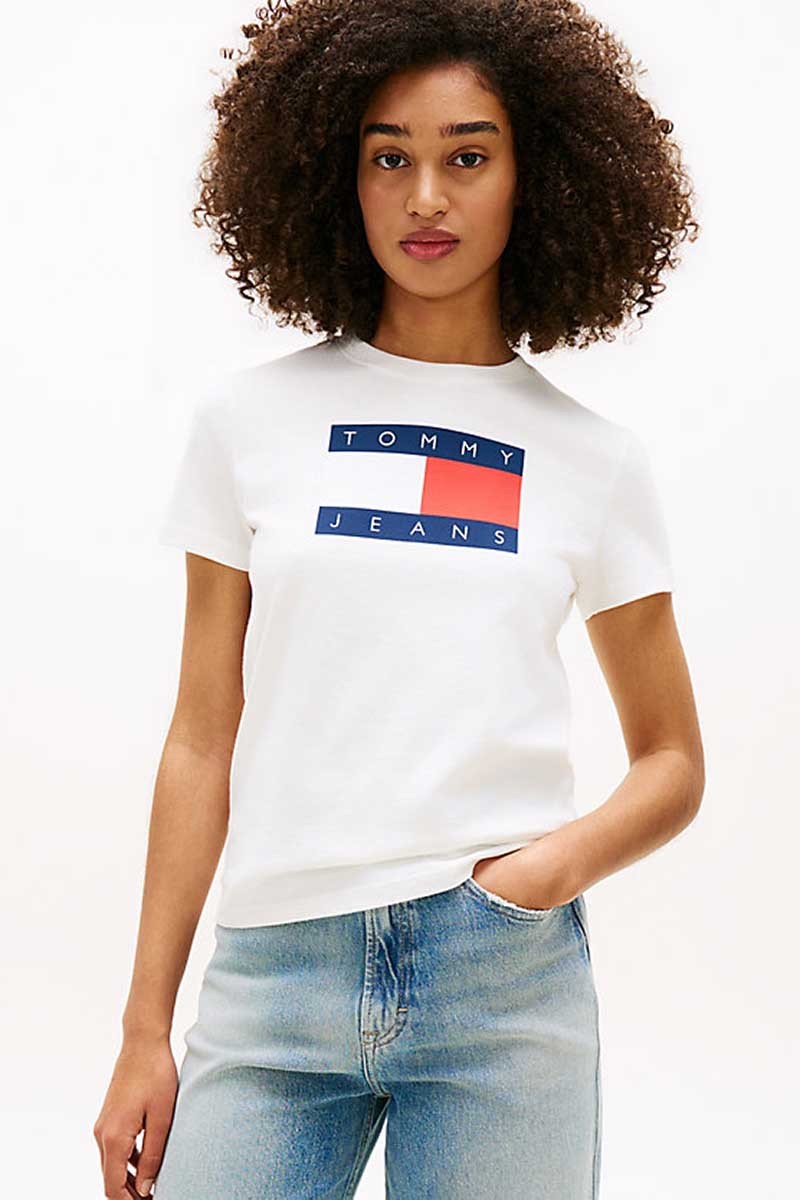 T-shirt Tommy Jeans girocollo in cotone con manica corta e logo frontale, perfetta per un look casual e quotidiano. Un capo essenziale, comodo e facile da abbinare.