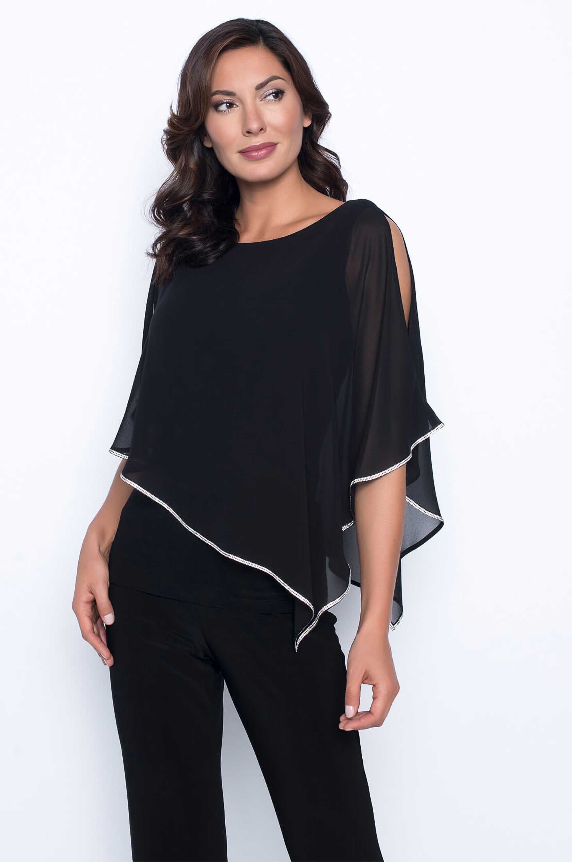 Blusa in maglia Frank Lyman con mantella in georgette con strass
