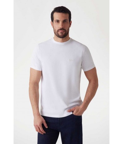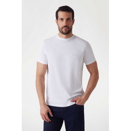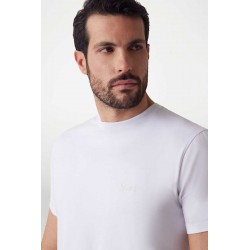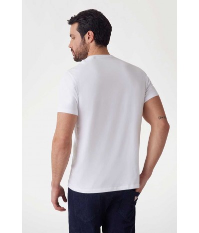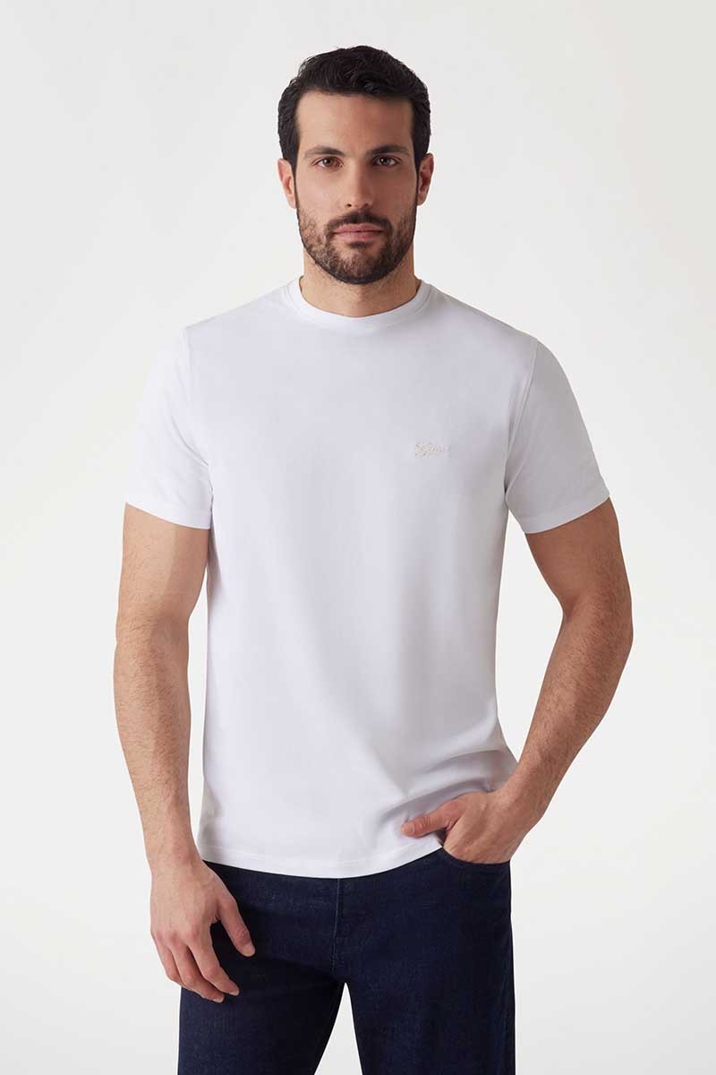 T-shirt uomo Guess in cotone elasticizzato, caratterizzata da tessuto leggero e piacevole da indossare. La scritta laterale in corsivo mette in evidenza il marchio con eleganza. Perfetta per completare outfit casual contemporanei.