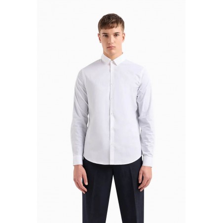 Camicia Basic in Cotone Armani ExchangeScopri la camicia basic in cotone di Armani Exchange, un capo essenziale che combina eleganza e comfort. Realizzata in un tessuto elastico di alta qualità, questa camicia offre una vestibilità impeccabile che si adatta perfettamente alla tua silhouette, garantendo libertà di movimento e comfort per tutta la giornata.Il design classico e minimalista presenta un colletto tradizionale e una chiusura con bottoni frontali, rendendo questa camicia versatile per qualsiasi occasione, sia formale che casual. La struttura in cotone elastico assicura una sensazione di morbidezza sulla pelle e una durata eccezionale, mantenendo la forma e la freschezza del capo anche dopo numerosi lavaggi.