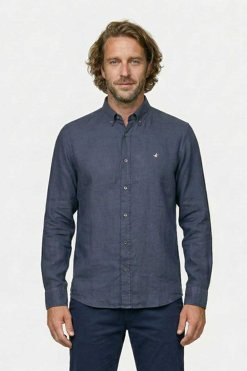 Camicia uomo Brooksfield in puro lino con fit regolare, ideale per la stagione più calda. Morbida e traspirante, presenta colletto button down e chiusura con bottoni centrali. Il logo sulla manica e i polsini con bottoni rendono il capo elegante e facile da abbinare.