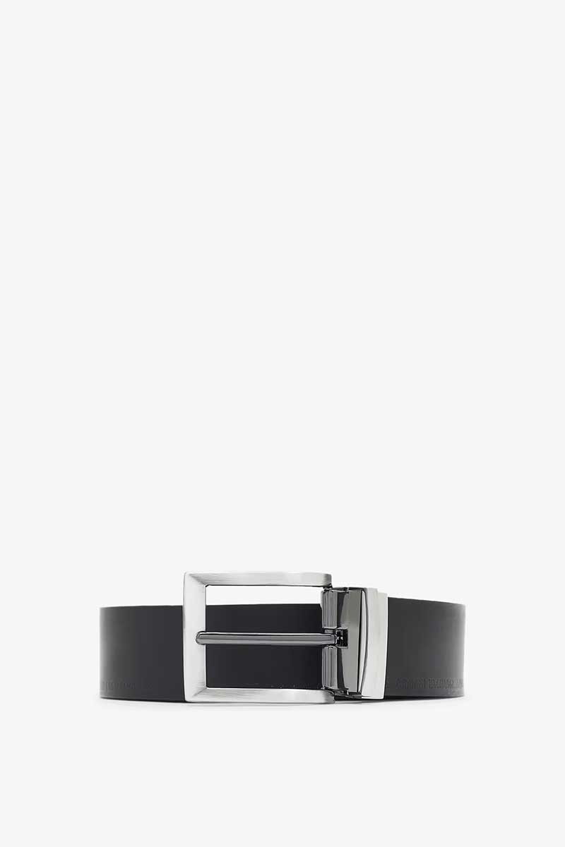 Cintura Armani Exchange realizzata in ecopelle liscia,caratterizzata da una raffinata micro scritta del marchio in rilievo a motivo continuativo,che arricchisce il design con discrezione ed eleganza.Il modello è double face e presenta un doppio colore,dettaglio che la rende estremamente versatile e adatta a diversi outfit e occasioni. La fibbia in acciaio completa il look con un tocco moderno e sofisticato, garantendo resistenza e stile.