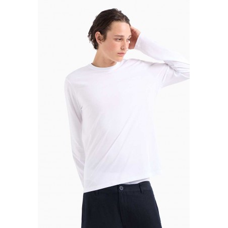T-shirt Armani Exchange a manica lunga, realizzata in cotone pregiato, morbido e traspirante, ideale per garantire comfort durante tutta la giornata. La vestibilità regolare assicura una linea versatile e adatta a diverse occasioni, mantenendo uno stile essenziale e contemporaneo.Un capo basico ma raffinato, perfetto come elemento passe-partout del guardaroba: può essere indossato da solo per un look casual oppure sotto giacche e felpe per outfit più strutturati.