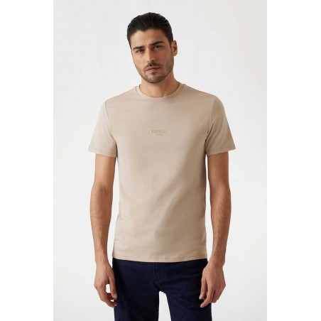 T-shirt uomo Guess a mezza manica con girocollo, realizzata in cotone fresco e confortevole. La mini scritta centrale in rilievo in gomma mette in evidenza il marchio con uno stile discreto. Disponibile anche in altri colori per abbinamenti versatili.