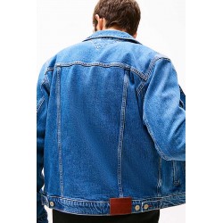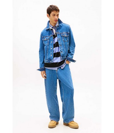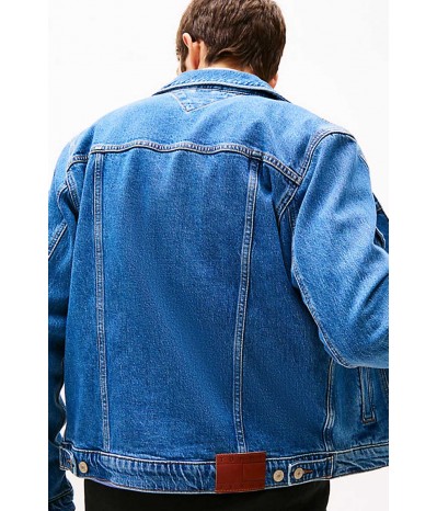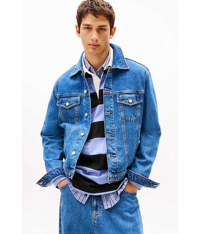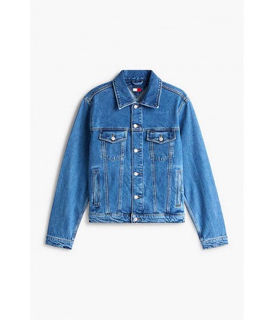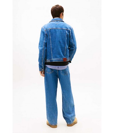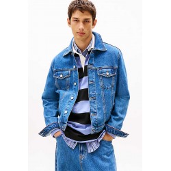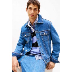 Giacca jeans uomo Tommy Jeans con vestibilità regolare e linea essenziale. Il modello presenta colletto classico, tasche sul petto e chiusura con bottoni frontali e ai polsi. Il piccolo logo laterale sulla tasca destra completa il design, perfetto per outfit primaverili.