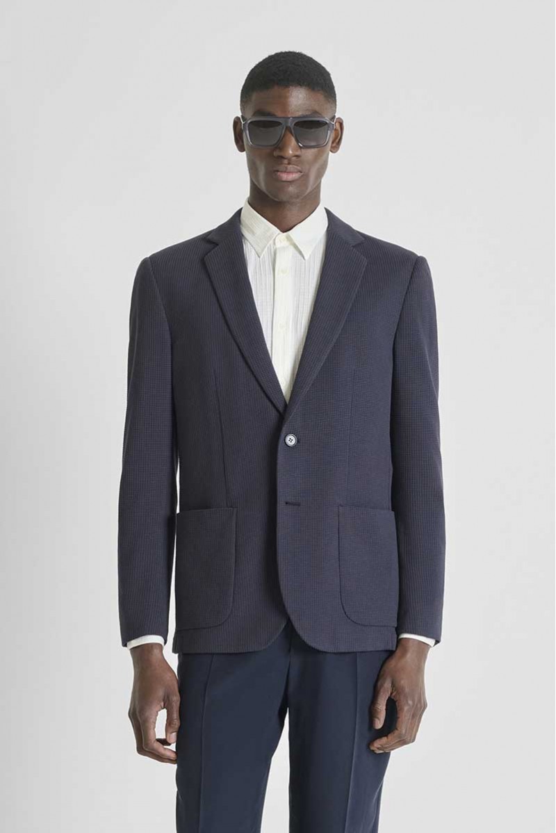 Giacca sportiva Anthony Morato sfoderata, leggera e versatile, ideale per la mezza stagione. Le tasche aperte aggiungono praticità, mentre l’operato a quadretti in risalto dona un tocco distintivo. Perfetta per look smart casual dal gusto contemporaneo.