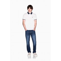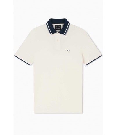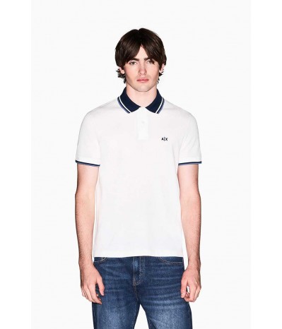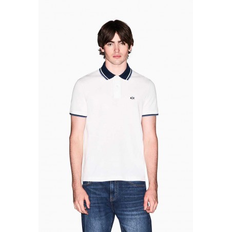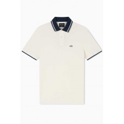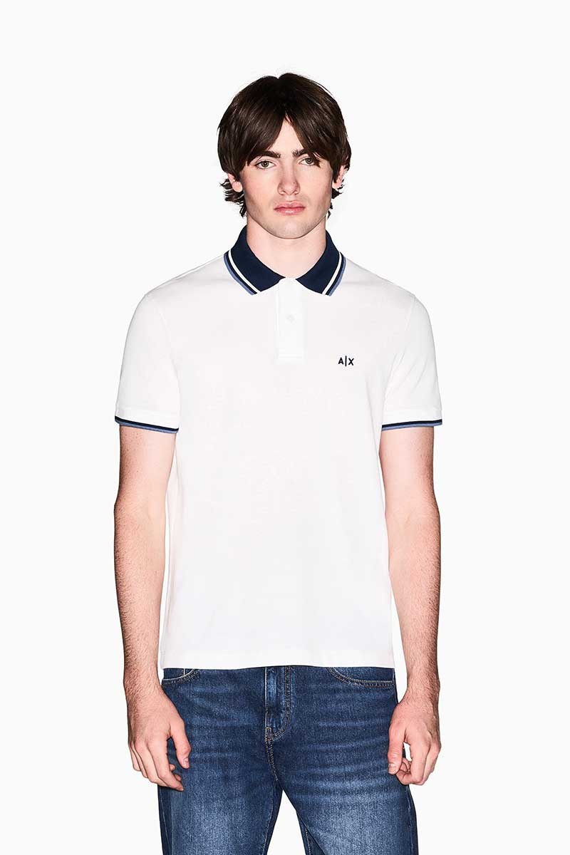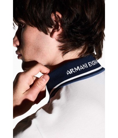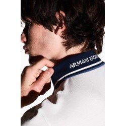 Polo da uomo Armani con vestibilità slim fit, impreziosita da logo in rilievo sul lato sinistro. Il colletto elasticizzato a righe dona carattere e dinamismo al capo. Disponibile anche nella variante blu, ideale per outfit contemporanei.