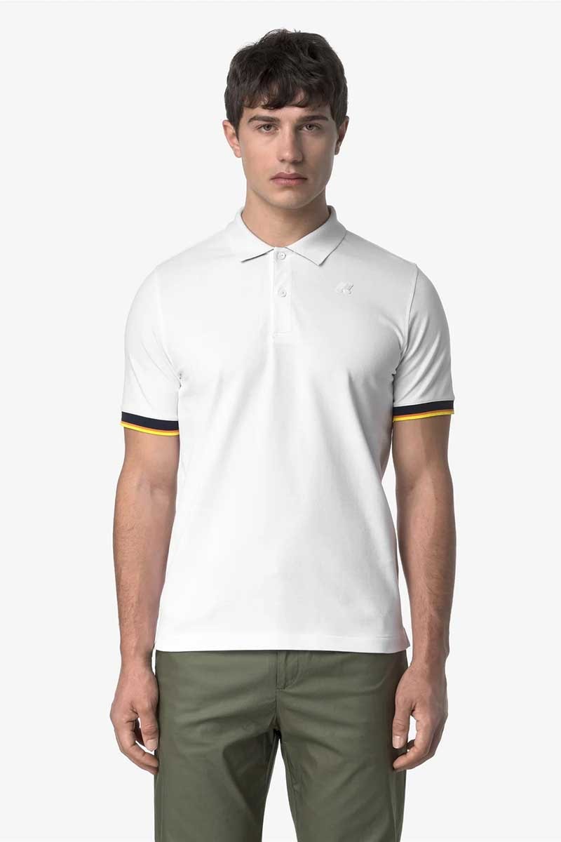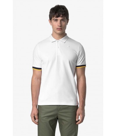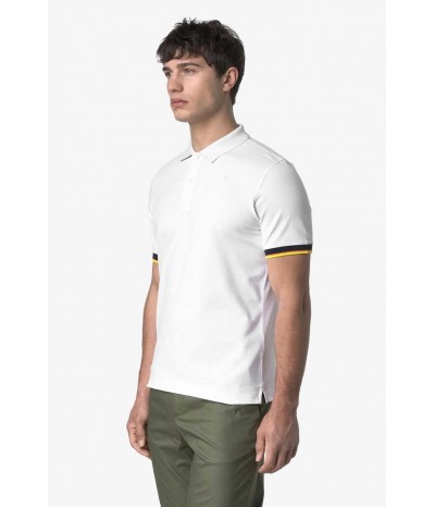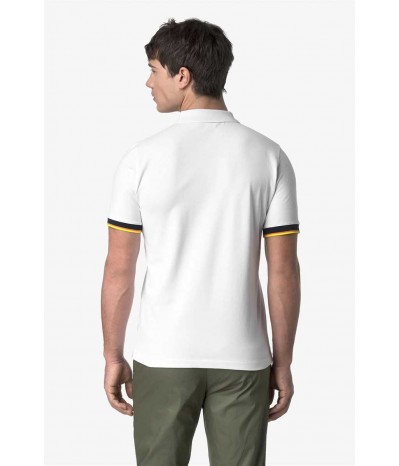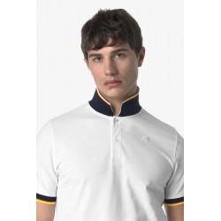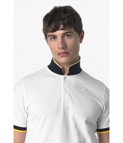 Polo K-Way da uomo con manica corta e bottoni sul petto, realizzata in cotone resistente e confortevole. Il colletto elasticizzato con colori iconici del brand e micro righine su colletto e maniche dona carattere al capo. Disponibile anche in altre varianti colore.