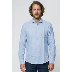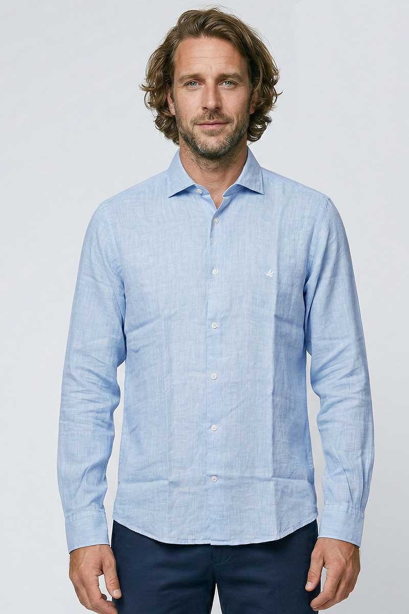 Camicia Brooksfield da uomo realizzata in lino 100%, leggera e confortevole. Il modello presenta colletto botton down, chiusura frontale con bottoni e polsini regolabili. Il piccolo logo sulla manica aggiunge un dettaglio distintivo per uno stile raffinato.