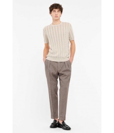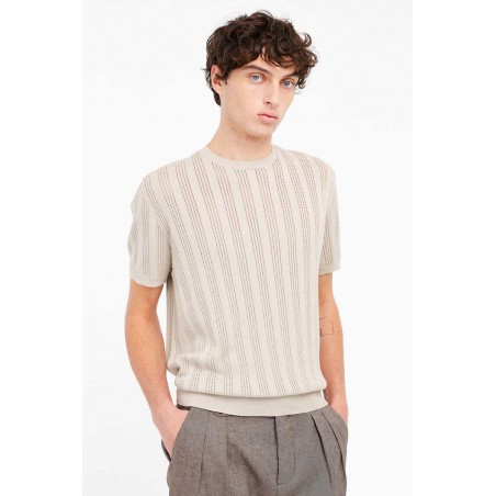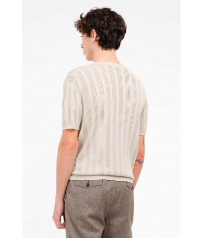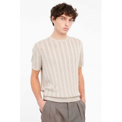 Maglia uomo Manuel Ritz in filo 100% cotone con girocollo e mezze maniche. La lavorazione esterna con micro traforatura dona al capo una texture particolare e raffinata. Le fasce elasticizzate su vita e maniche completano un design versatile ed elegante.