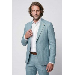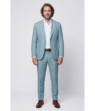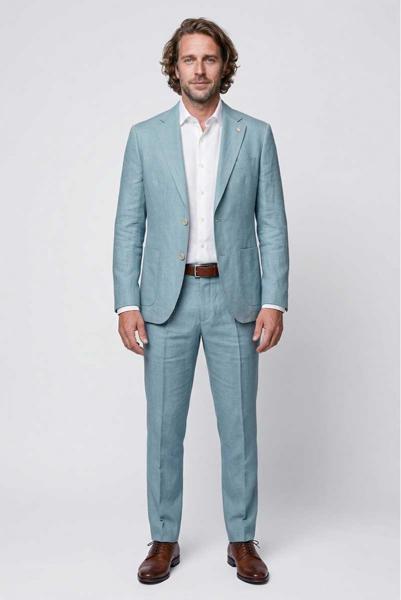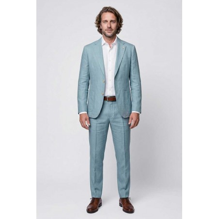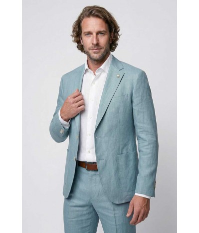 Abito uomo Manuel Ritz in lino con vestibilità regular, leggero e fresco. Tasche aperte frontali, spacchi posteriori e chiusura con bottoni. Rever a lancia per uno stile elegante e naturale.