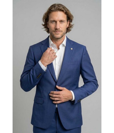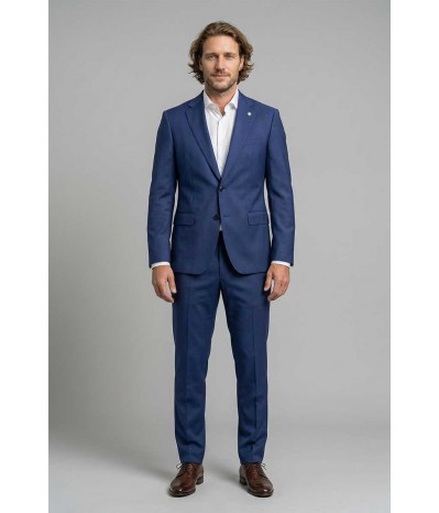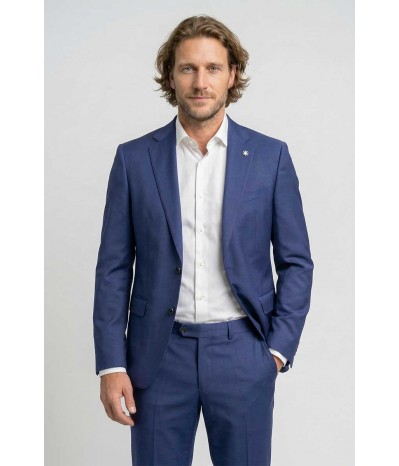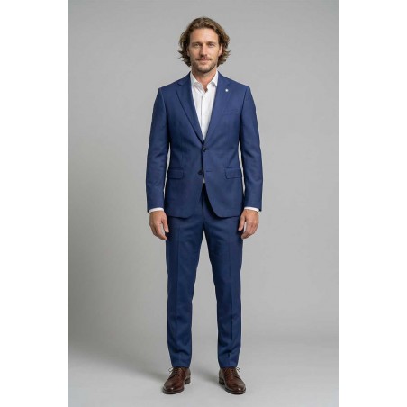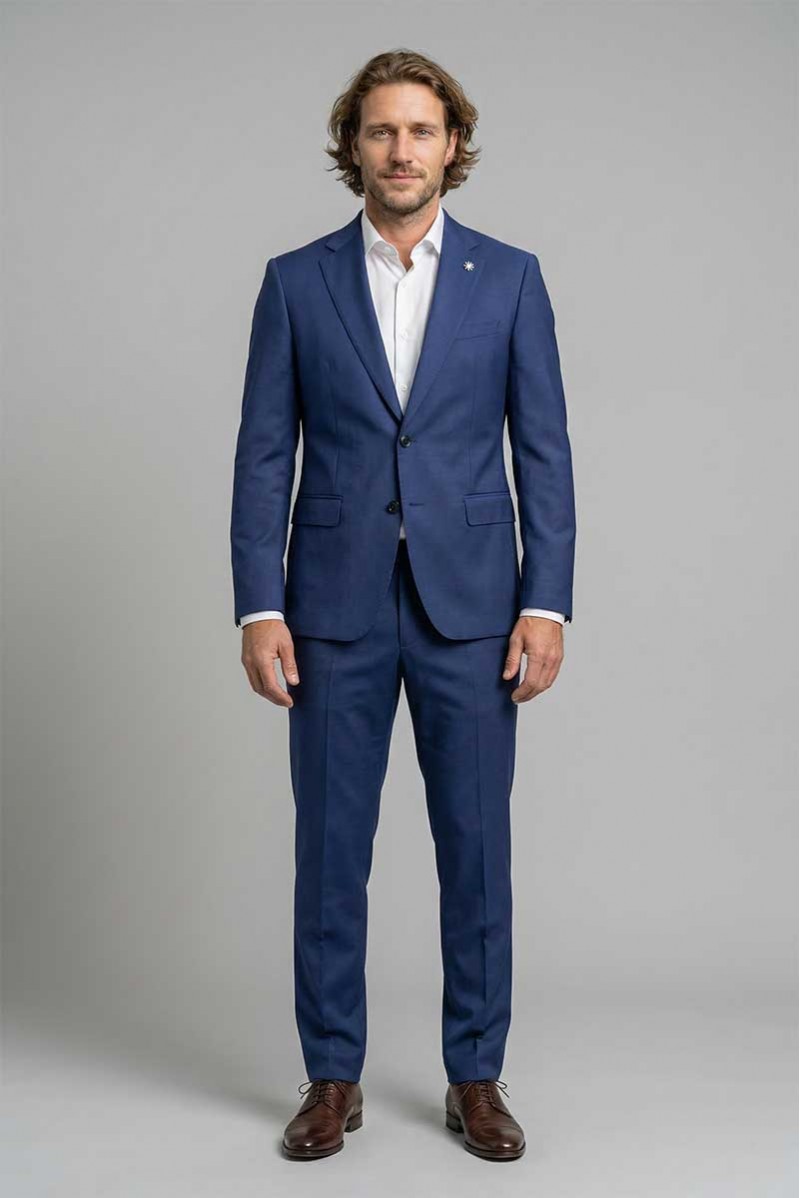 Abito uomo Manuel Ritz dal taglio regolare con tessuto liscio e stile sofisticato. La giacca presenta collo a lancia, tasche laterali chiuse, bottoni frontali e triplo bottoni sui polsi. Foderato internamente e completato da pantalone morbido e classico, con dettaglio logo sul colletto.
