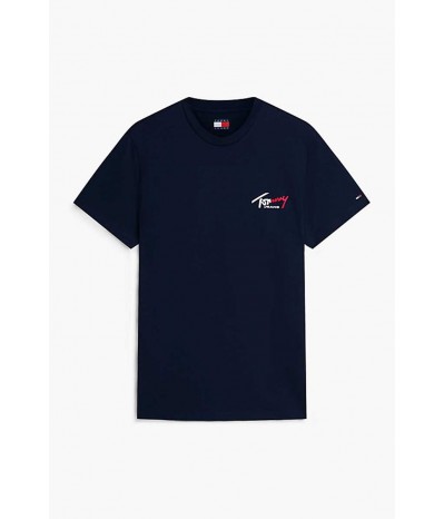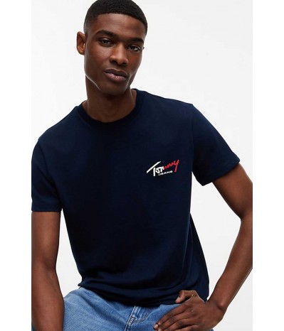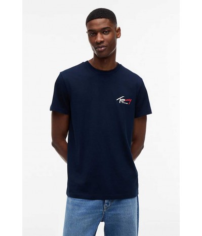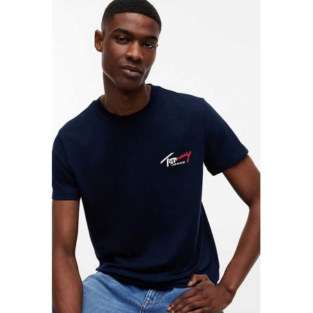 T-shirt uomo Tommy Hilfiger girocollo in cotone fresco, pensata per garantire comfort durante la stagione calda. La scritta in corsivo in alto a destra dona carattere al capo evidenziando il marchio. Un modello versatile per abbinamenti casual.