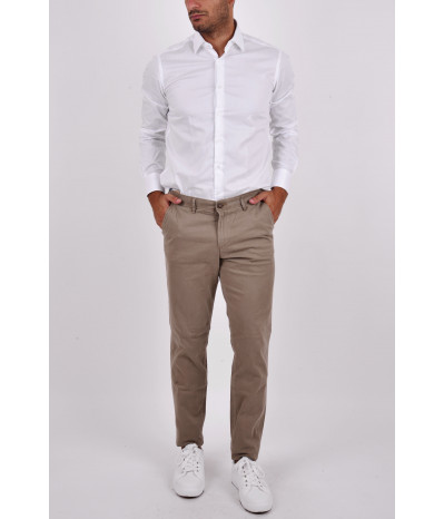Marco è uno slim fit raffinato con gamba stretta, perfetto per il look sartoriale casual. La vestibilità è asciutta sulla coscia senza essere troppo aderente. Il tessuto elasticizzato è realizzato principalmente in cotone, a cui è stato aggiunto un certo grado di elasticità. In questo modo avrai il look autentico che cerchi, senza rinunciare alla comodità. Un paio di chino è essenziale in qualsiasi guardaroba. Il modello classico con tasche anteriori inclinate e dettagli minimal offre a pantaloni come questi un look intramontabile e li rende facili da abbinare e indossare.